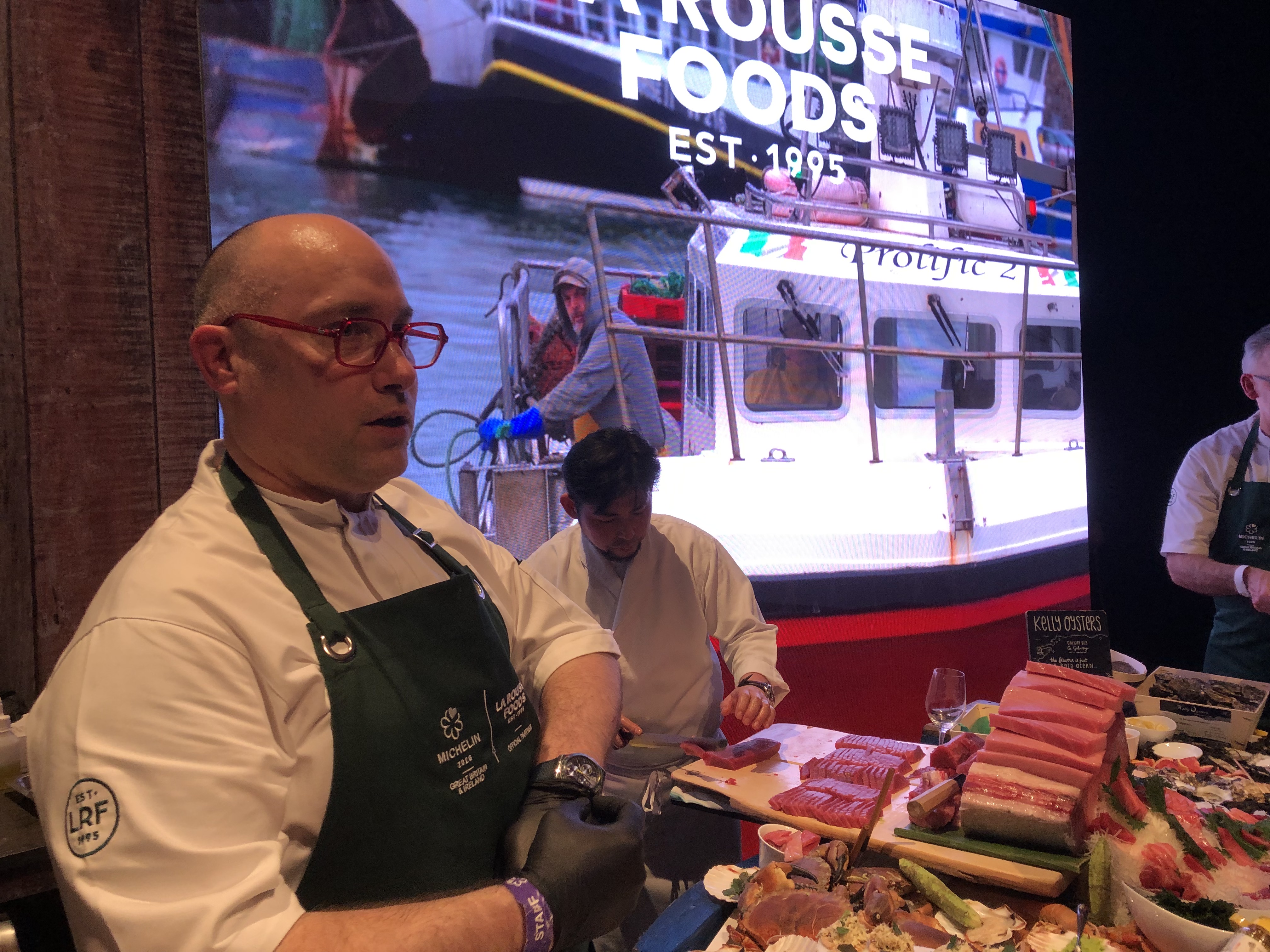 Also some Irish inputs, notably a video from Glenlo Abbey (our own 5-Star Hotel of the Year), and it was nice to see their unique railway restaurant The Pullman get its star, along with Forest Avenue in Dublin, and we enjoyed the warmly sensible comments on the meaning of hospitality from Barbara Nealon of Saint Francis Provisions, Kinsale (Service Award). The excellent Larousse Foods contribution at the ‘cocktails’ afterwards also lent some much needed personality, with impressive Irish food displays, producers to chat to, and tasty nibbles.